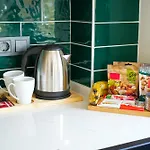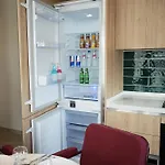 К услугам гостей оборудованная кухня, на которой предусмотрели холодильник и духовку.